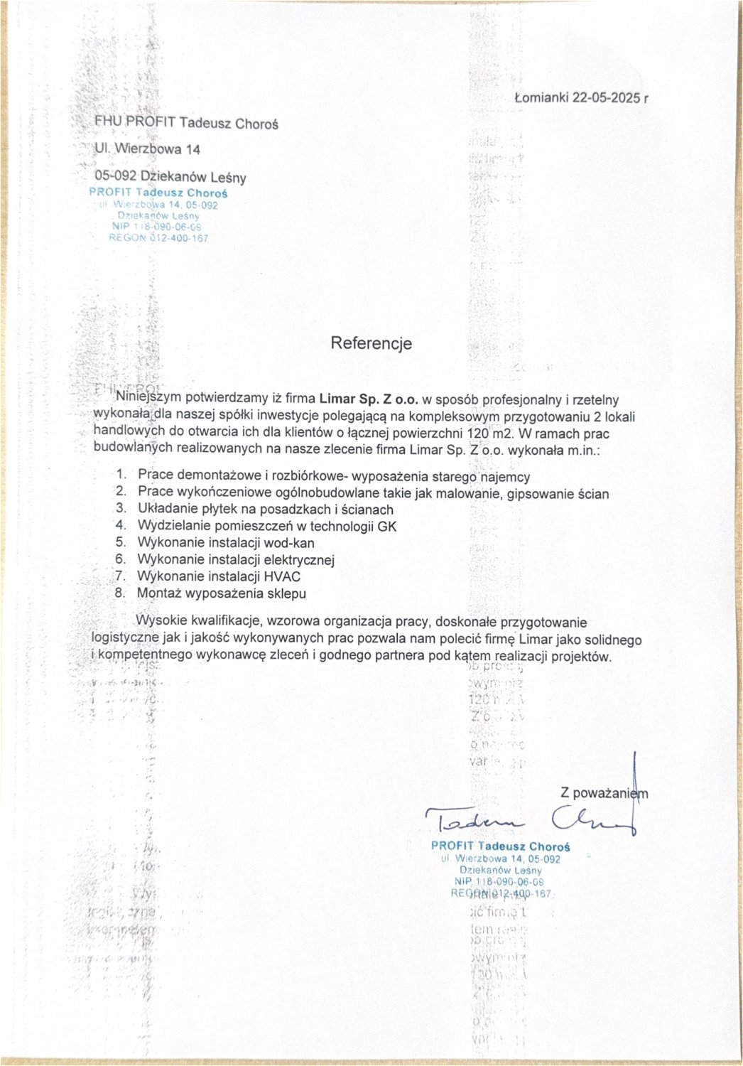 Sprawdź opinie klientów LIMAR Sp. z o.o. Zobacz, dlaczego inwestorzy cenią nas za jakość, terminowość i profesjonalne podejście do budowy.